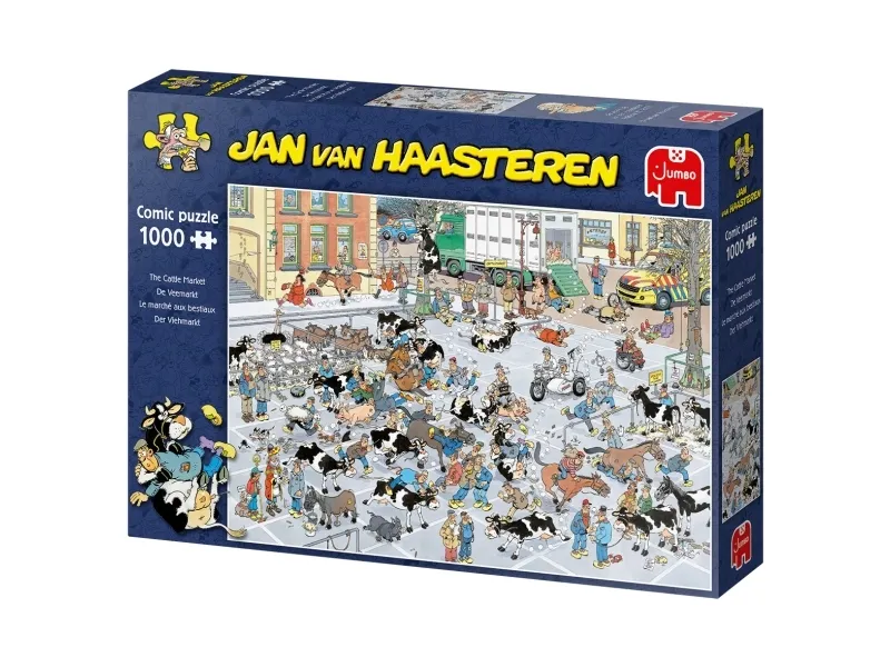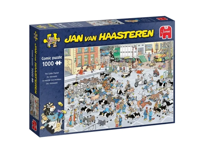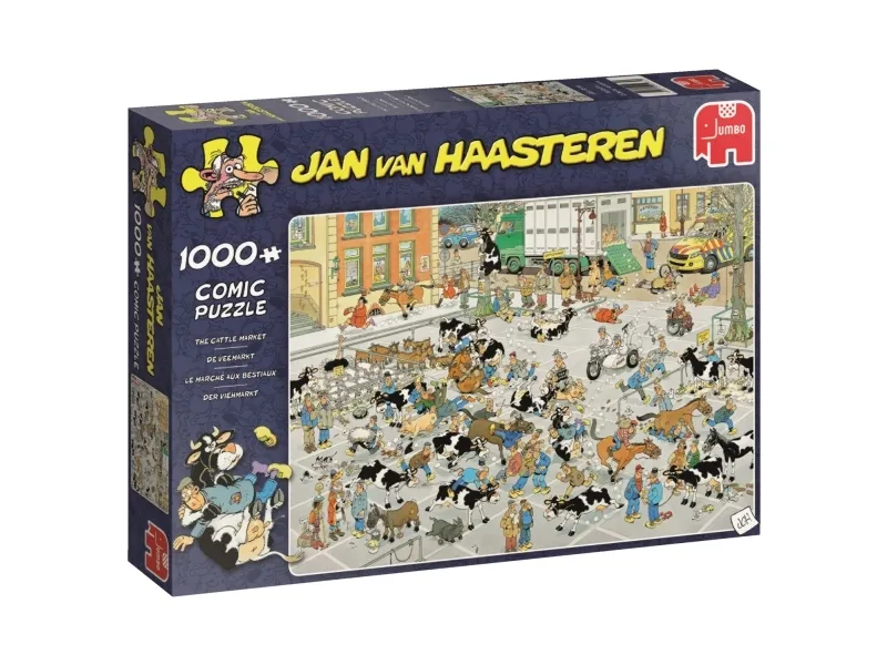 Jan van Haasteren The Cattle Market 1000 pcs. Number of puzzle pieces: 1000 pc(s). Genre: Cartoons, Theme: Jan van Haasteren, Recommended age (min): 12 yr(s), Recommended age (max): 99 yr(s). Width: 680 mm, Height: 490 mm