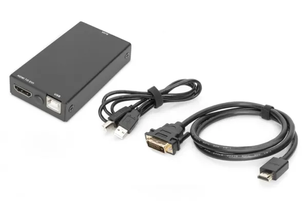 1 x HDMI-DVI-kabel 1 x kabel for USB-A til USB-B