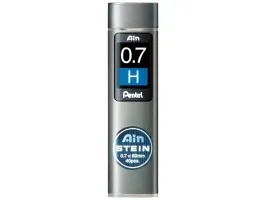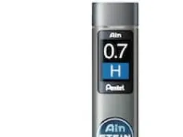 Stifter, Pentel® AIN STEIN High Polymer Hårdhedsgrad: H. Det hårde bly er specielt godt til f.eks. tekniske skitser eller meget præcist arbejde. Blyets diameter: 0,7 mm. Stifter med ekstra høj brudstyrke, stor sværteevne og en blød skrivefornemmelse. Best.enhed: etui a 40 stifter. Kolli a 12 etuier. Yderkarton a 432 etuier.
