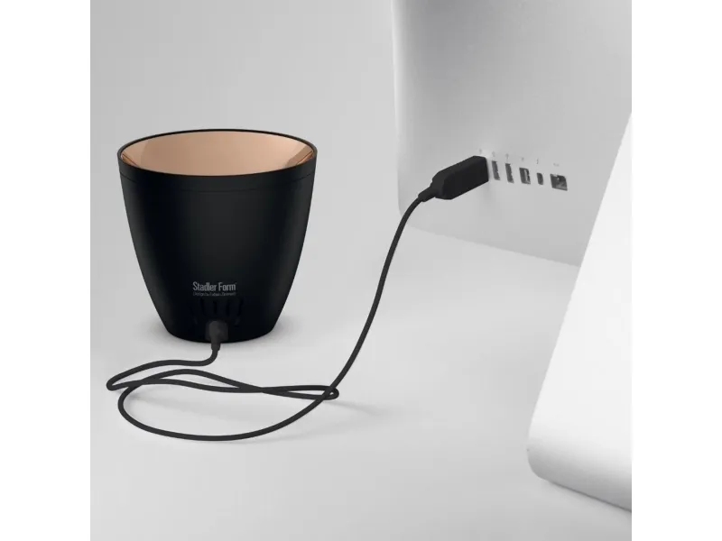The aroma diffuser with Amber Light™ creates unforgettable, atmospheric moments. Zoe’s cool mist is made visible by her amber light. The bronze-coloured, deceptively genuine looking flame transforms the room into an oasis of well-being. This quiet and energy-efficient aroma diffuser uses ultrasound technology to optimally emit essential oils into the room as extra fine mist whenever you want her to – for up to 10 hours. Zoe is a winner in every respect: her attributes includes features such as a USB connection for mobile use and an adapter for use at home as well as an automatic shut-off.