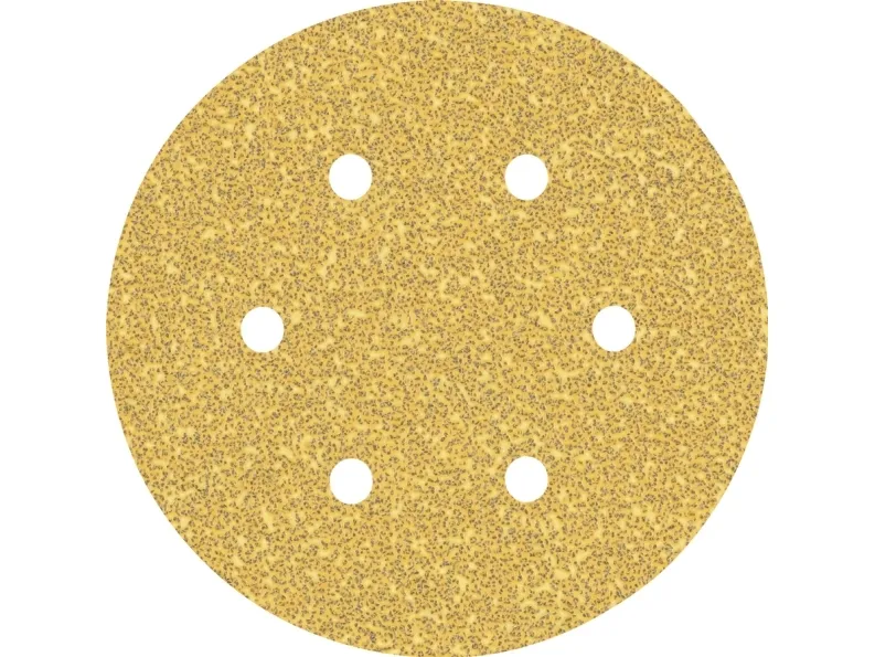 EXPERT C470 slibepapir med 6 huller til excentersliber, 150 mm, G 60, 50-dele. Burrelukning Op til 2 gange hurtigere end standard-slibepapir - slibning af store flader er tidskrævende: Mange slibepapirer arbejder hurtigt med støv og mister deres sliversitet, så den egentlige slibeproces behøver mere tid. Ved hjælp af kombinationen af skarpe korn og speciel teknologi, som forhindrer tilstopning, beholder Expert C470 slibepapir sine særlige egenskaber. Det betyder, at du kan arbejde hurtigere og længere uden at skulle gå på kompromis med sliberesultatet. For at opnå den bedst mulige Slibeflade ved vores produktionsmetode tilpasses frøene for at holde dem skarpe oven på dem for at opnå en aggressiv kornopretning. Så dækker vi dem med en stærk binding og en belægning for at forhindre tilstopning. Dette sørger sammen med en optimal korntæthed for maksimal hastighed og minimal tilstopning. Fastsæt mindre tid med slibning og mere arbejde på samme tid – med Bosch Expert C470 sandpapir. Enkel fastgørelse med velcrolukning.