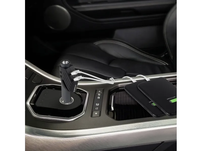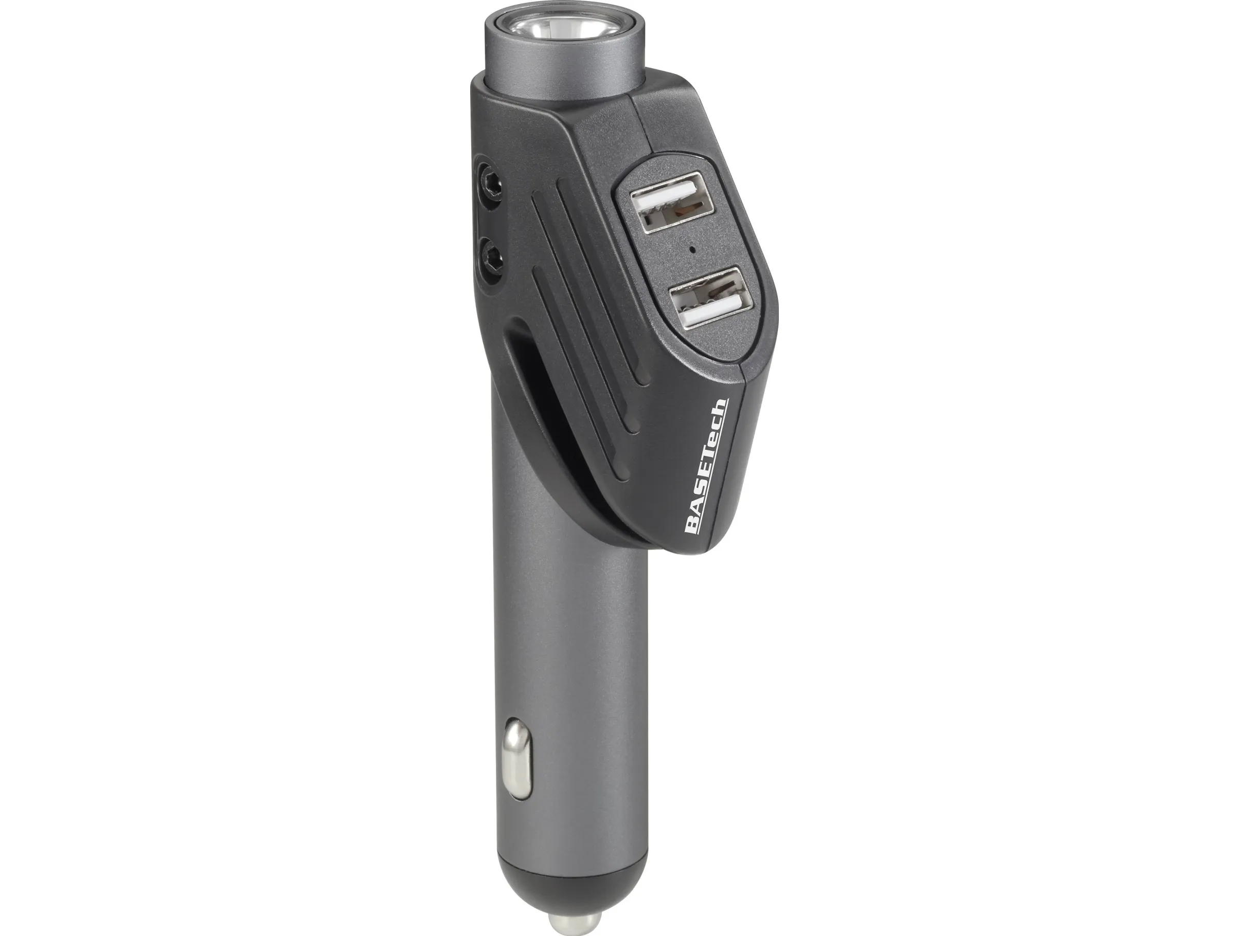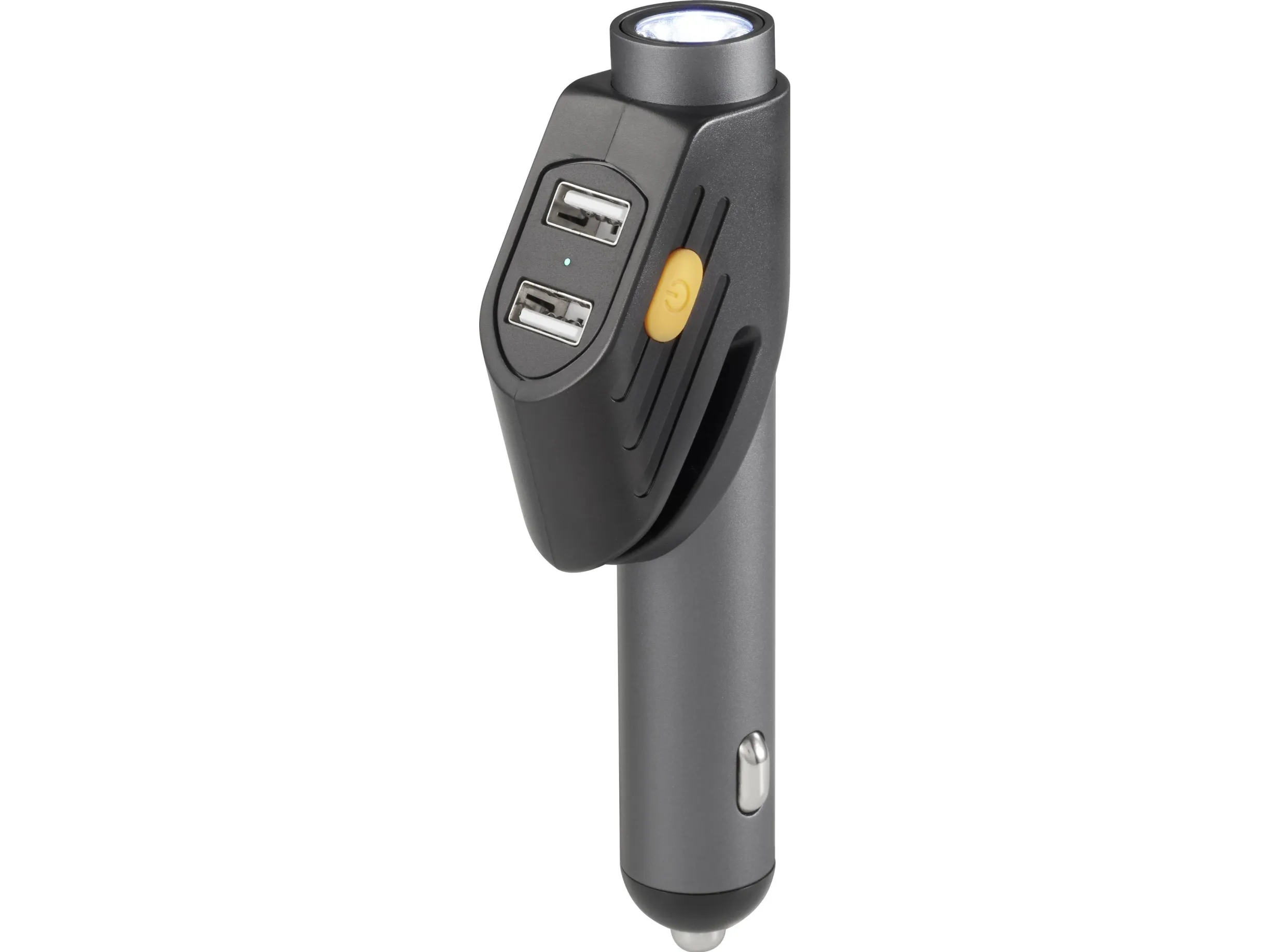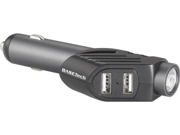 Denne praktiske allrounder hører til enhver bil: Via en 12 V-tilslutningsstik stiller multifunktions-sikkerhedshammer fra Basetech to USB-tilslutninger med høj strømafgivelse til hurtig opladning til rådighed og fungerer samtidig som lommelygte med mindst 10 minutters driftstid med fuld effekt. Den indbyggede LED har en levetid på 10.000 timer.