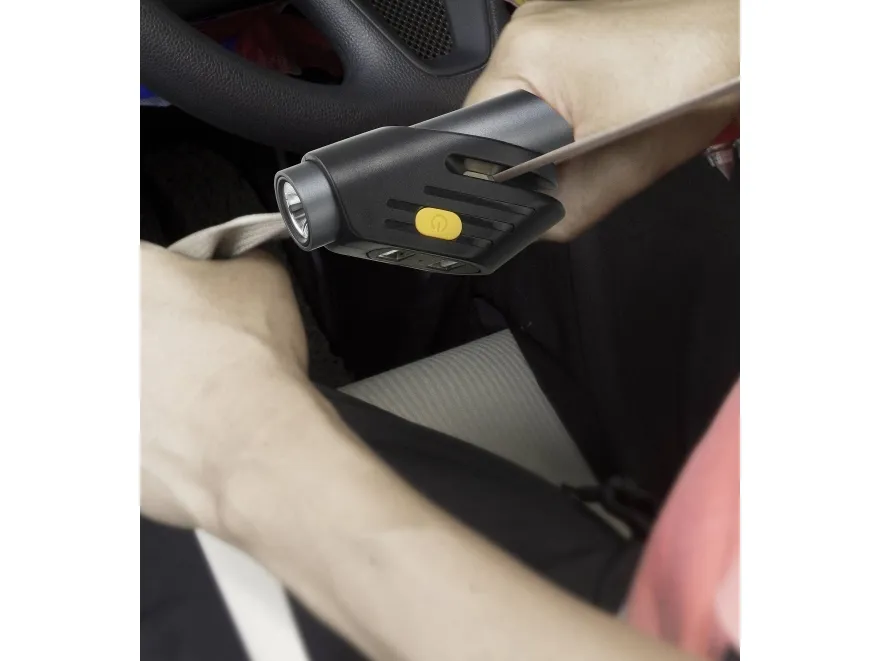 Men opladning og lys er ikke den eneste funktion i denne praktiske hjælper. I stedet kan dens sikkerhedsfunktioner redde liv: Hvis døre og sikkerhedsseler ikke kan åbnes i tilfælde af en ulykke, kan skiverne på køretøjet knuses med spidsen af ladetraktøren, og selektreren kan anvendes til at befri personerne i køretøjet. Fem funktioner i ét apparat - sådan fungerer multifunktion.