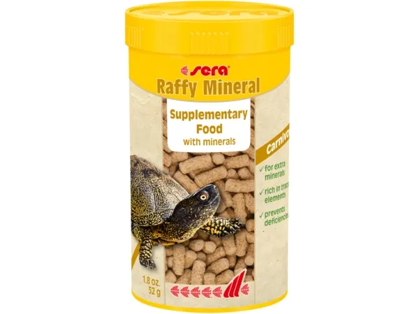 sera Raffy Mineral is the supplementary food consisting of carefully processed floating granules for carnivorous reptiles such as terrapins.