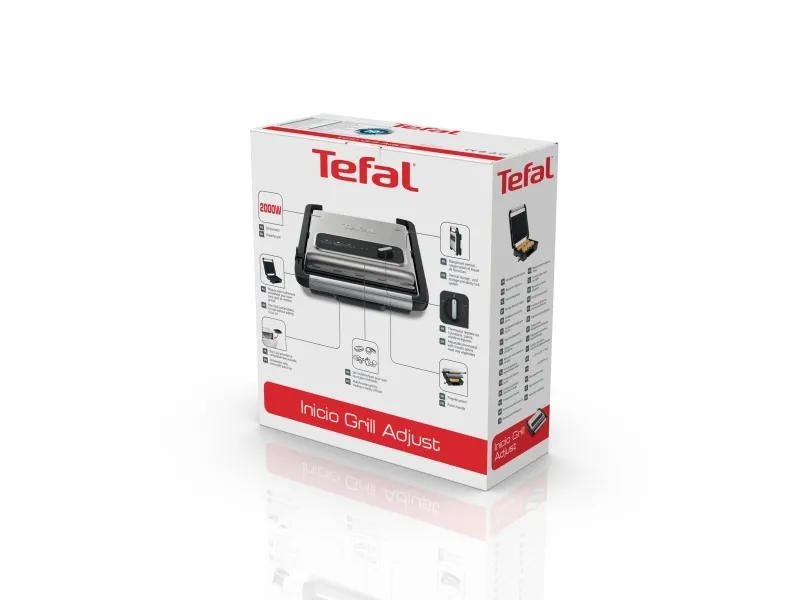 Tefal Inicio GC242D. Product colour: Black, Stainless steel, Form factor: Rectangular, Control type: Rotary. Power: 2000 W. Cord length: 0.9 m, Weight: 3.38 kg. Package width: 337 mm, Package depth: 364 mm, Package height: 118 mm. Products per pallet: 48 pc(s)