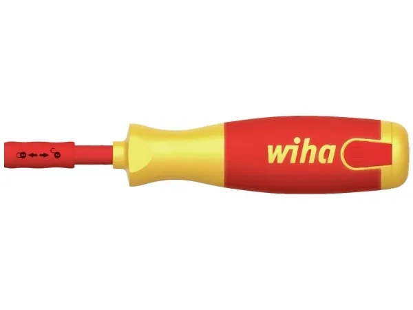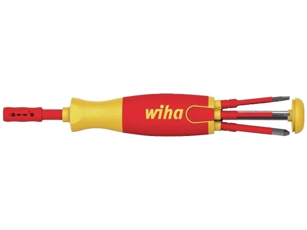 Skruetrækker med bit magasin LiftUp electric kærv, Phillips med 6 slimBits (38612) Skruetrækkeren med bit-magasin LiftUp electric er den ideelle ledsager til enhver elektriker, når man er på farten. Bitdepot, der er placeret i grebet, har plads til 6 almindelige simbits og kører ud af magasinet ved et tryk på en knap. Derved sikres en nem udtagning af bits. Den gennemprøvede ClicFix holder fjerner alle bits sikkert og låser dem pålideligt. Denne teknologi gør Bitmagaziner til en universelt anvendelig skruetrækker. Også inden for sikkerhed giver magasin-bitholder den størst mulige. Både magasin-bitholderen og de medfølgende slimBits er certificeret i henhold til den internationale standard IEC 60900. De slanke, 75 mm lange slimBits giver takket være den fuldt integrerede beskyttelsesisolering i den forreste del af bitten perfekt adgang til dybtliggende skrue- eller fjederklemmer. Et yderligere pluspunkt er den drejelige hætte, som sikrer en komfortabel håndtering. 6 mm slimBits må kun bruges i slimVario® bitholder og slimTorque VDE bitholder (VDE drejningsmoment-system).