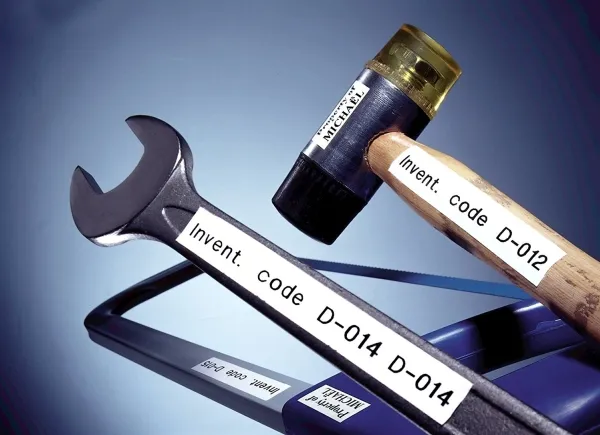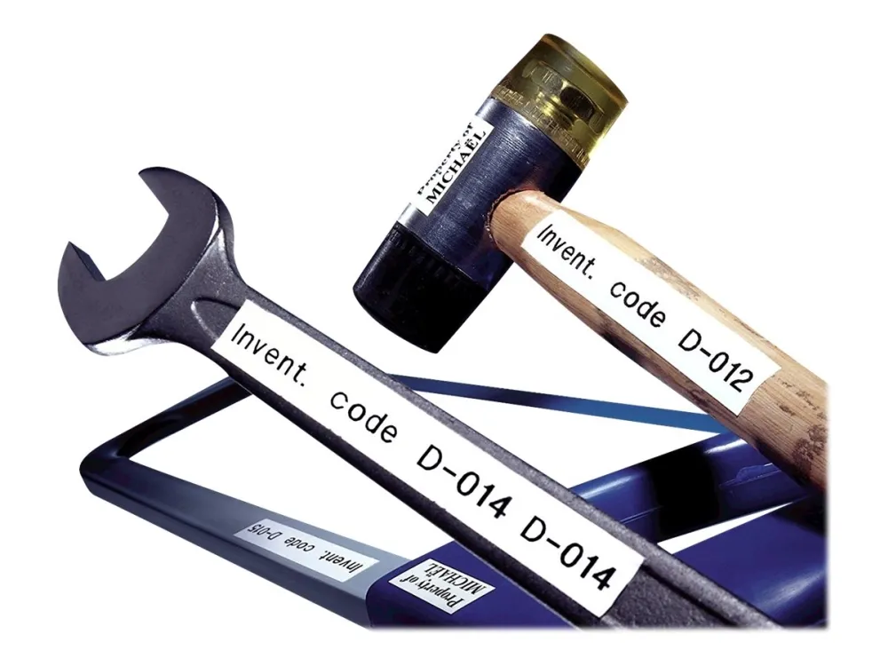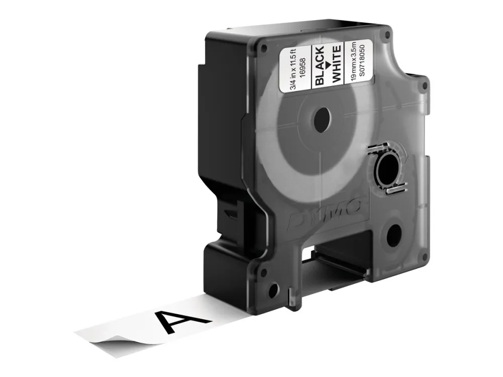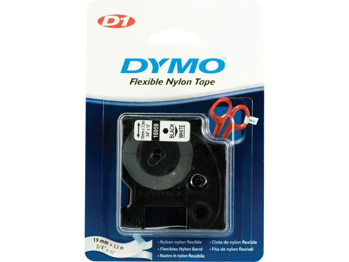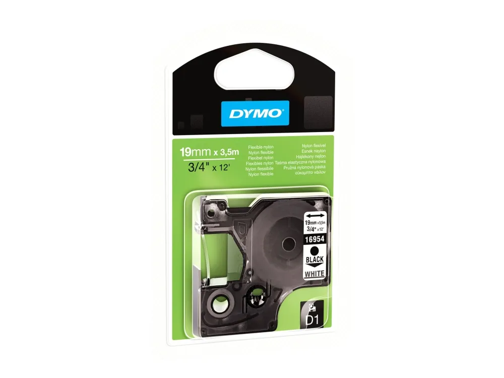 DYMO D1 Fleksible nylonetiketter har permanent lim på baksiden og er perfekte for merking av buede eller strukturerte overflater, for flaggmerking av kabler.