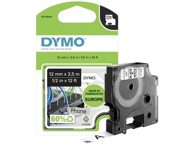 DYMO D1 - fleksibel etikett-tape - 1 kassett(er) - Roll (1.9 cm x 3.5 m)