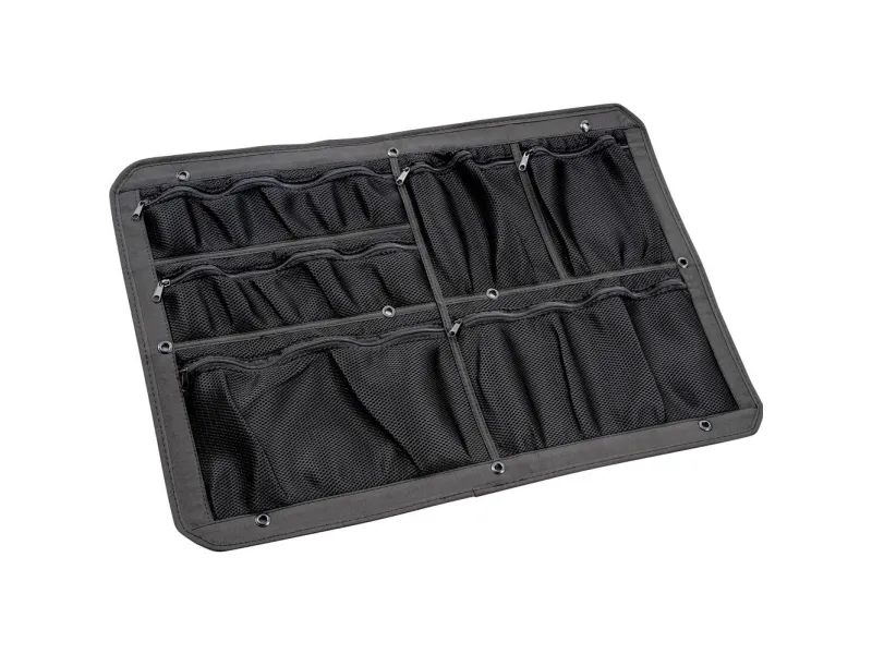 With this lid bag you create order in your case! Made of mesh material, this lid bag offers the possibility to store small items like memory cards, cables etc. Depending on the size of the case, the mesh bag has different numbers of compartments. All compartments can be closed with a zipper so that nothing can fall out.
