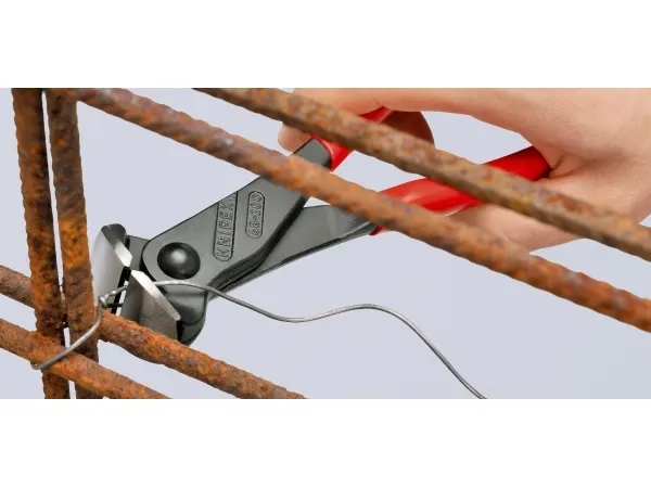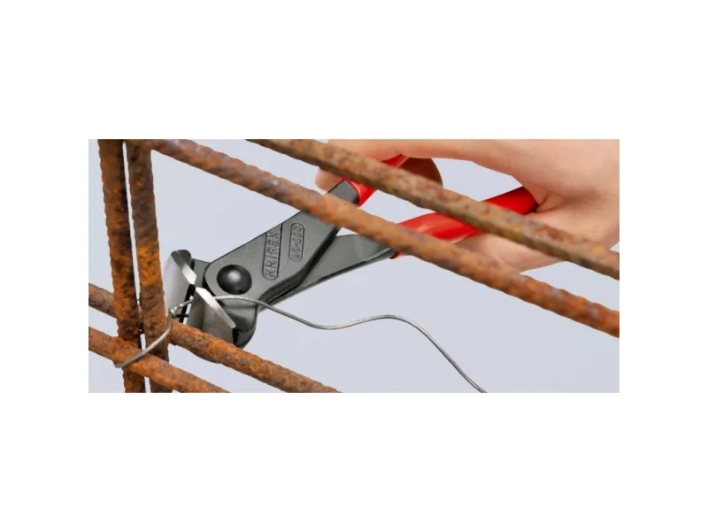 68 01 280 EAN Forbidetang også egnet til at sno og skære bindetråd. hovedformen giver mulighed for et optimeret bevægelsesforløb ved spænding af fletknuden ved binding af jernarmering. Med skær til blød og hård tråd. Skær yderligere hærdet; skærhårdhed ca. 61 HRC.
