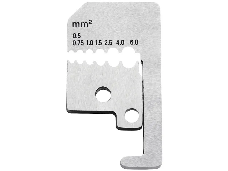 12 29 180 1 par reserveknive til 12 21 180 Med udskiftelige knive til fire (afstemt til diameter) eller seks (afstemt til tværsnit) forskellige ledertværsnit. Ingen beskadigelse af lederen på grund af præcist slebne formknive; selv fintrådede litzetråde afisoleres skånsomt. Klemkæber holder tråden fast ved afisoleringen. Med indstilleligt længdeanslag til ens afisoleringslængder ved seriearbejde. En trykfjeder bringer tangen tilbage til udgangsstillingen.
