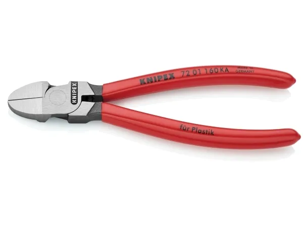 72 01 160 KA Skævbider til kunststof Med planslebne skærflader. Til plan afskæring af sprøjtestøbte plastdele og støberester. Klipper nemt materiale som bly, uden grater. Med åbningsfjeder. forbedret udveksling for 25% højere skæreydelse.