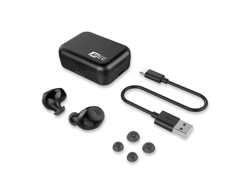 Truly wireless in-ear headphones deliver unparalleled freedom of movement with MEE signature sound. Features include IPX5 sweat resistance, compact and ergonomic earpiece design, and up to 23 hours of battery life with included charging case.