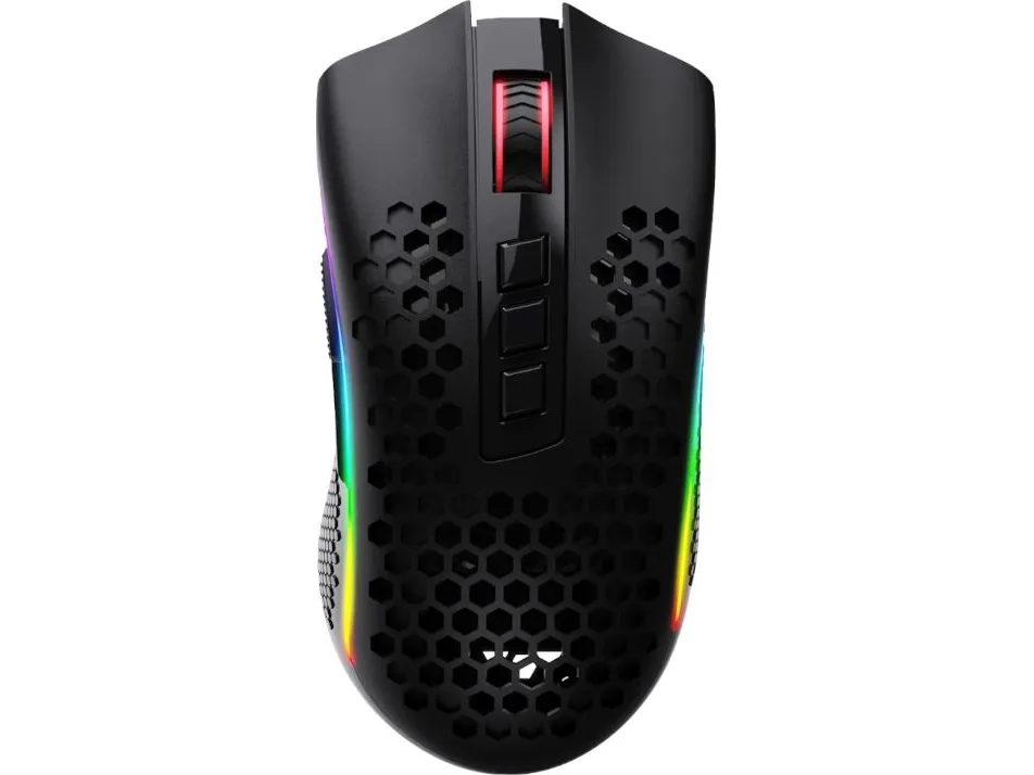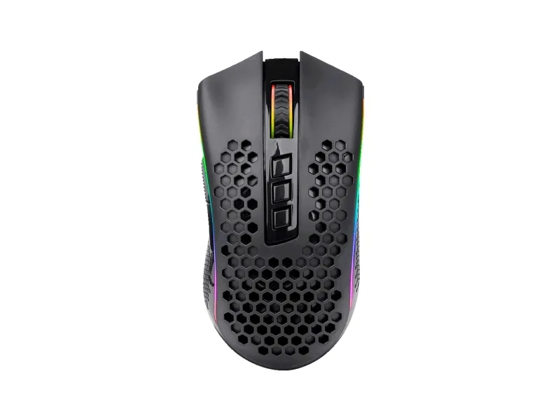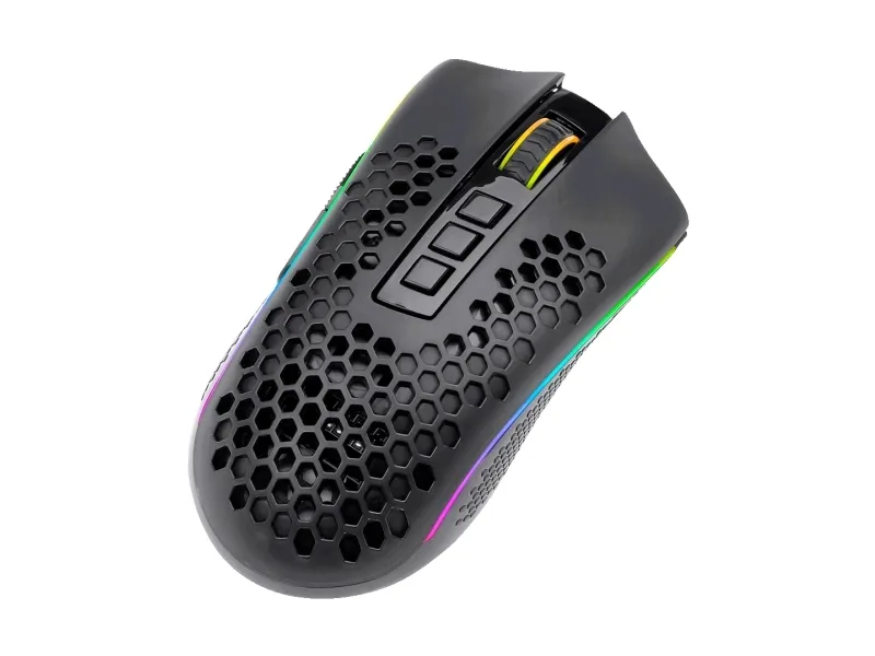 Redragon M808-KS Storm Pro Mouse The M808-KS Storm Pro mouse is a device that will provide you with confidence and precision even in the toughest battles. The STORM PRO mouse stands out with its wireless mode, programmable buttons, and stunning appearance!