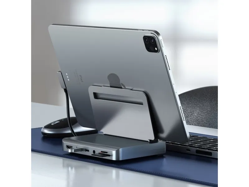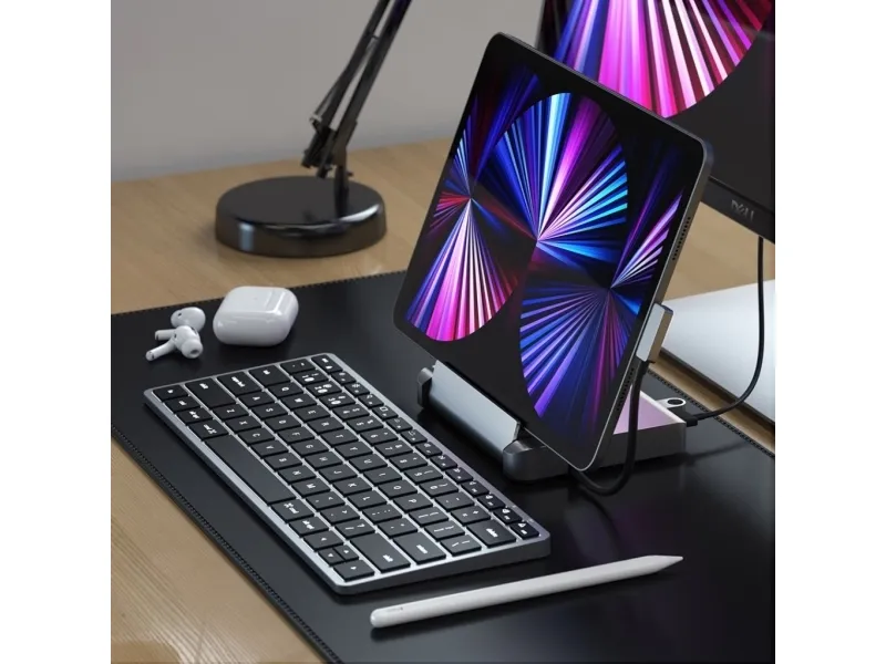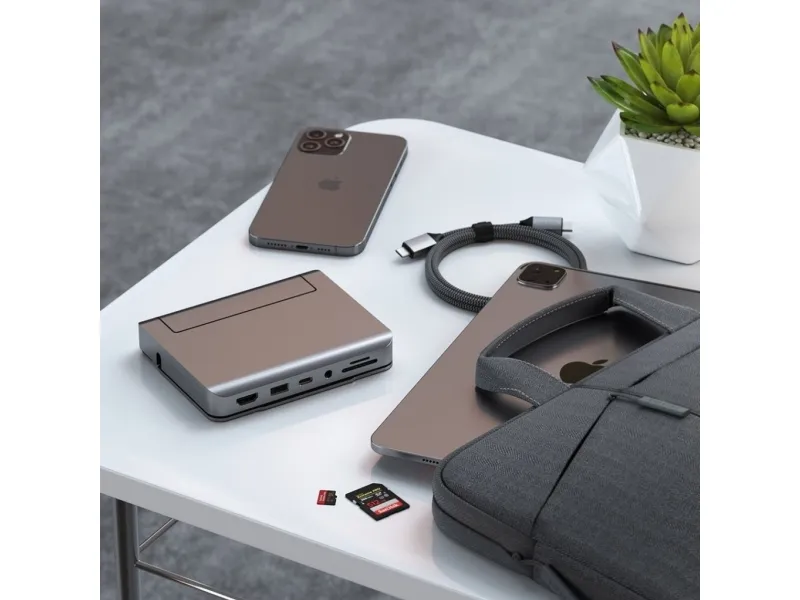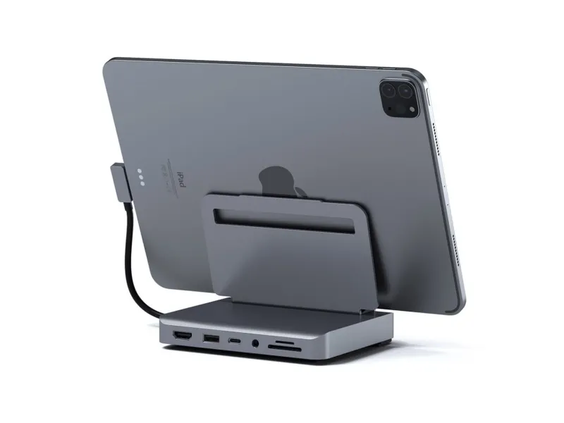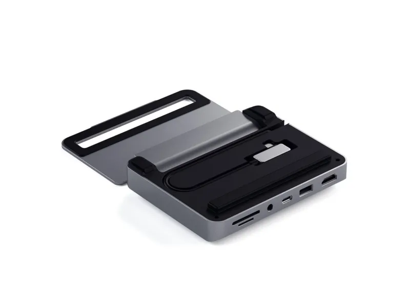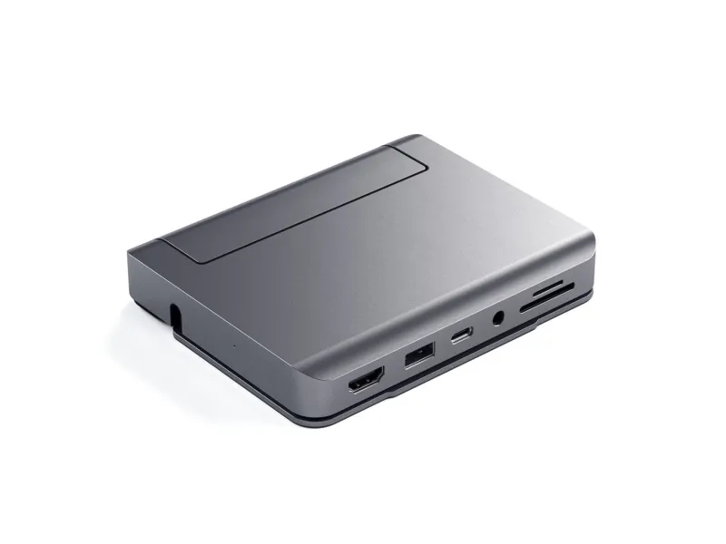 Flytt grensene for et tradisjonelt oppsett med Satechi Aluminum Stand & Hub for iPad Pro, som kombinerer alle funksjonene til en stasjonær PC med bekvemmeligheten til et nettbrett. Stativet er designet for Apple iPad Pro (2018 og nyere), og har 4K HDMI (60 Hz), USB-C PD-lading, USB-A-data, SD-kortleser og en lydkontaktport - for enkel tilgang til eksterne enheter samtidig som du kan heve iPad Pro. Det praktiske sammenleggbare designet og den moderne aluminiumsfinishen gjør stativet perfekt uansett hvor du jobber - uten behov for et skrivebord.