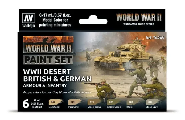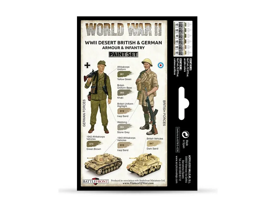 This set, together with the Utility Paint Set, contains all the colors used for the painting of British and German desert Army vehicles and infantry.