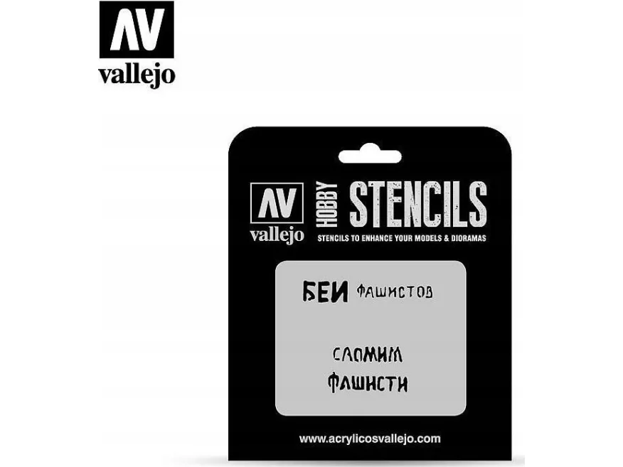 Vallejo Stencils offers a wide selection of references and themes for modellers and crafters. Translucent and flexible material, adapts easily to the surfaces of the model. Washable, easy to handle, the stencils facilitate the reproduction of all kind of hobby effects and textures. Fantasy and military dioramas, tanks, buildings, aircrafts, spaceships, Sci-Fi, these can now be enhanced with details for interesting and simple results. Available in several categories: . AFV Markings: Badges, numbers, slogans, signs, unit and nationality markings designed for historical and modern armoured vehicles. . Camouflages: Patterns for armoured vehicles and aircraft camouflages; available in several scales. . Air Markings: Badges, numbers, unit and nationality markings, registries and surface effects designed for historical and modern aircraft. . Lettering & Signs: Traffic signs, fonts and signs for dioramas, adverts, retail signs and graffities. . Sci-Fi & Fantasy: Badges, numbers, effects, panels and patterns designed for Sci-Fi vehicles and spaceships. . Texture Effects: Splashes, textures, cracks, stains and other physical texture and effects.