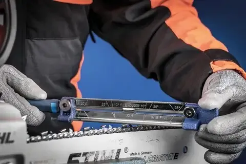 Kædesavssliber Den kompakte slibeløsning CHAIN SHARP MT kombinerer en kædesavfil og en dybdebegrænsningsfil i et ergonomisk værktøj. Den definerede højde på kædediene gør det lettere at skærpe savtanden og forhindrer beskadigelse af forbindelsesled i savkæden. Den anbragte dybdembegrænserfil giver mulighed for individuel dybdebegrænsningsindstilling. Den medleverede lære tager hensyn til dybdebegrænsningsafstandene på 0,65 mm (.025) for mere hårdt eller 0,75 mm (.030) for blødt træ.Drevtyper:- Manuel indsatsAnvendelser:Til slibningMateriale:- Stål op til 1.200 N/mm2 (< 38 HRC)Produktfordele:- Kompakt sliber.- Individuel indstilling af dybdebegrænseren er mulig.- Passer til alle gængse kædesavskfiller.- Lang levetid med HEST-fil.