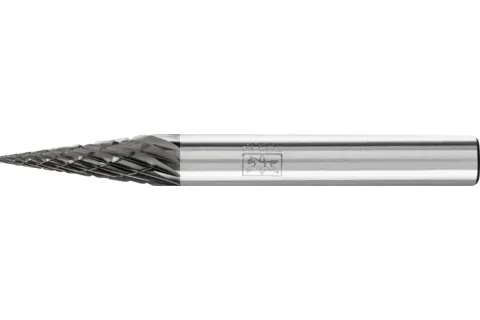 Fræsestift Spidsformet fræsestift i henhold til din 8032 med fortanding i henhold til din 8033, flad spids.Drevtyper:- Krumtapakseldrev- Ligesliber- Robotter- Stationære maskiner- VærktøjsmaskineAnvendelser:- UdfræsningEgalisér- AfgratningOprettelse af gennembrydninger- Overfladebearbejdning- Fræsning- Svejsesøm bearbejdningMateriale:- Aluminiumlegeringer hårdt- Indsatsstål- Hærdet, hærdet stål over 1.200 N/mm2 (over 38 HRC)Hærdet hærdet hærdet hærdet stål med en vægt på over 700 N/mm² ( > 220 HB)- Stål- Stål, støbestål- Stål op til 1.200 N/mm2 (< 38 HRC)Stål op til 700 N/mm² ( < 220 HB)- Støbestål- Værktøjsstål