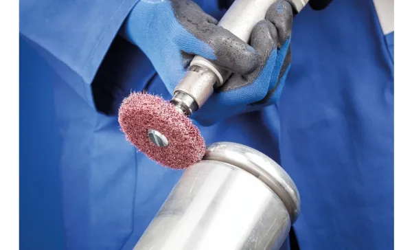 Fleece-skive POLINOX-Ronden egner sig til fleksibel bearbejdning af komplicerede værktøjskonturer og anvendes i periferislibning.Drevtyper:- Krumtapakseldrev- LigesliberAnvendelser:- Ru- Afgratning- Overfladebearbejdning- Rengøring- Struktur (mattering, stregmattering og satinering)- Trinvis finslibningAnvendelsesanbefaling:- For at zoome ind på anvendelsesbredden skal der spændes op til tre Ronder efter hinanden.Sæt den bedste ydeevne i brug ved den anbefalede skærehastighed på 10–25 m/s.Materiale:- AluminiumCoboltbasegeringerNikkelbaslegeringer (f.eks. B. (Undtagen til brug ved anæstesi)- Bronze- TitanTitanlegeringer- Kobber- Messing- Zink- Rustfrit stål (INOX)- Termoplast- Fiberforstærket duroplaste (GfK, CFK)- Hærdet, hærdet stål over 1.200 N/mm2 (over 38 HRC)Stålmaterialer med en hårdhed på over 54 HRC- Stål op til 1.200 N/mm2 (< 38 HRC)- Støbestål