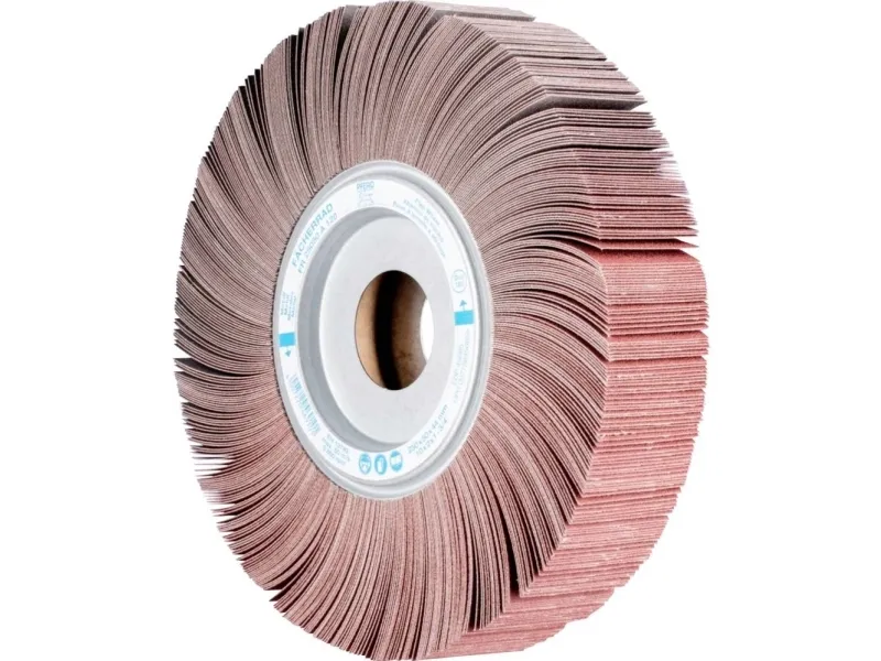 Stjernefjederhjul Til universel anvendelse af grov- til finslibning.Drevtyper:- Krumtapakseldrev- LigesliberAnvendelser:Egalisér- Afgratning- Overfladebearbejdning- Svejsesøm bearbejdning- Struktur (mattering, stregmattering og satinering)- Trinvis finslibningMateriale:- Aluminium- Kobber- Messing- Rustfrit stål (INOX)- Grå- /sfærisk (GG/GJL, GG/GJS)- Temperstøbning- Hærdet, hærdet stål over 1.200 N/mm2 (over 38 HRC)Stålmaterialer med en hårdhed på over 54 HRC- Stål op til 1.200 N/mm2 (< 38 HRC)- Støbestål