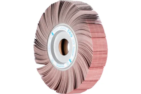 Stjernefjederhjul Til universel anvendelse af grov- til finslibning.Drevtyper:- Krumtapakseldrev- LigesliberAnvendelser:Egalisér- Afgratning- Overfladebearbejdning- Svejsesøm bearbejdning- Struktur (mattering, stregmattering og satinering)- Trinvis finslibningMateriale:- Aluminium- Kobber- Messing- Rustfrit stål (INOX)- Grå- /sfærisk (GG/GJL, GG/GJS)- Temperstøbning- Hærdet, hærdet stål over 1.200 N/mm2 (over 38 HRC)Stålmaterialer med en hårdhed på over 54 HRC- Stål op til 1.200 N/mm2 (< 38 HRC)- Støbestål