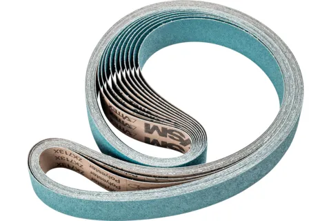 Slibebånd Til grove slibeopgaver ved høj slibeydelse og levetid.Drevtyper:- BåndsliberAnvendelser:Egalisér- Afgratning- KantbearbejdningTil slibning- Svejsesøm bearbejdning- Trinvis finslibningMateriale:- Rustfrit stål (INOX)- Grå- /sfærisk (GG/GJL, GG/GJS)- Temperstøbning- Hærdet, hærdet stål over 1.200 N/mm2 (over 38 HRC)Stålmaterialer med en hårdhed på over 54 HRC
