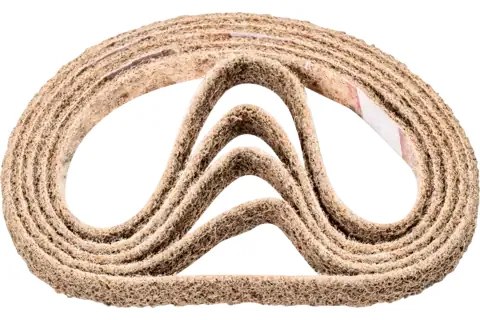Slibebånd Universel til overfladebehandling, for eksempel B. Kan anvendes på rørkonstruktioner af metaller, som fjerner forslibningsspor, fjernelse af oxidation og lettere afgratningsarbejde. Giver matterede og silkemat overflader.Drevtyper:- BåndsliberAnvendelser:Egalisér- Afgratning- KantbearbejdningTil slibning- Svejsesøm bearbejdning- Trinvis finslibningAnvendelsesanbefaling:Sæt den bedste ydeevne i brug ved den anbefalede skærehastighed på 5–15 m/s.Materiale:- AluminiumCoboltbasegeringerNikkelbaslegeringer (f.eks. B. (Undtagen til brug ved anæstesi)- Bronze- TitanTitanlegeringer- Kobber- Messing- Zink- Rustfrit stål (INOX)- Grå- /sfærisk (GG/GJL, GG/GJS)- Temperstøbning- Termoplast- Fiberforstærket duroplaste (GfK, CFK)- Hærdet, hærdet stål over 1.200 N/mm2 (over 38 HRC)Stålmaterialer med en hårdhed på over 54 HRC- Stål op til 1.200 N/mm2 (< 38 HRC)- Støbestål