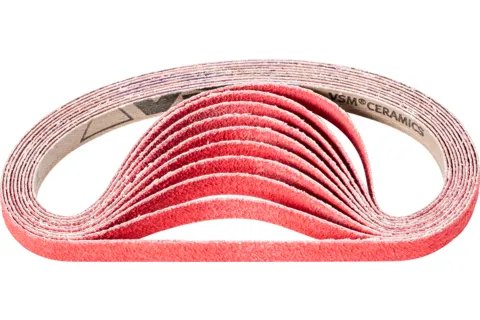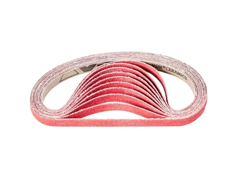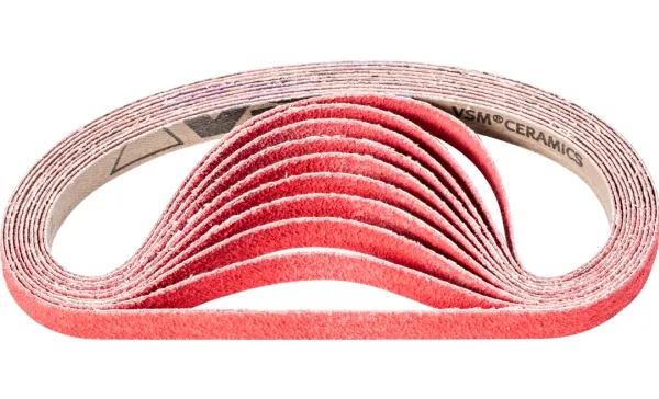 Slibebånd Til aggressiv slibning med højeste spåntagende effekt på hårde, dårligt varmeledende materialer. Konstant høj ydeevne på grund af selvslibende keramikkorn. Sliberbaserede additiver i belægningen giver en betydeligt højere slibeydelse, forhindrer tilstopning og giver en kold slibning.Drevtyper:- BåndsliberAnvendelser:Egalisér- Afgratning- KantbearbejdningTil slibning- Svejsesøm bearbejdning- Trinvis finslibningMateriale:- AluminiumCoboltbasegeringerNikkelbaslegeringer (f.eks. B. (Undtagen til brug ved anæstesi)- Bronze- Titan- Rustfrit stål (INOX)- Grå- /sfærisk (GG/GJL, GG/GJS)- Temperstøbning