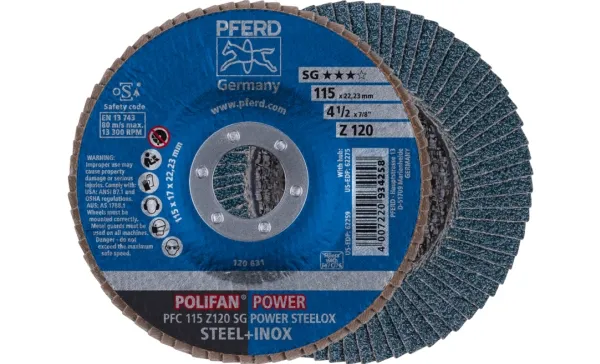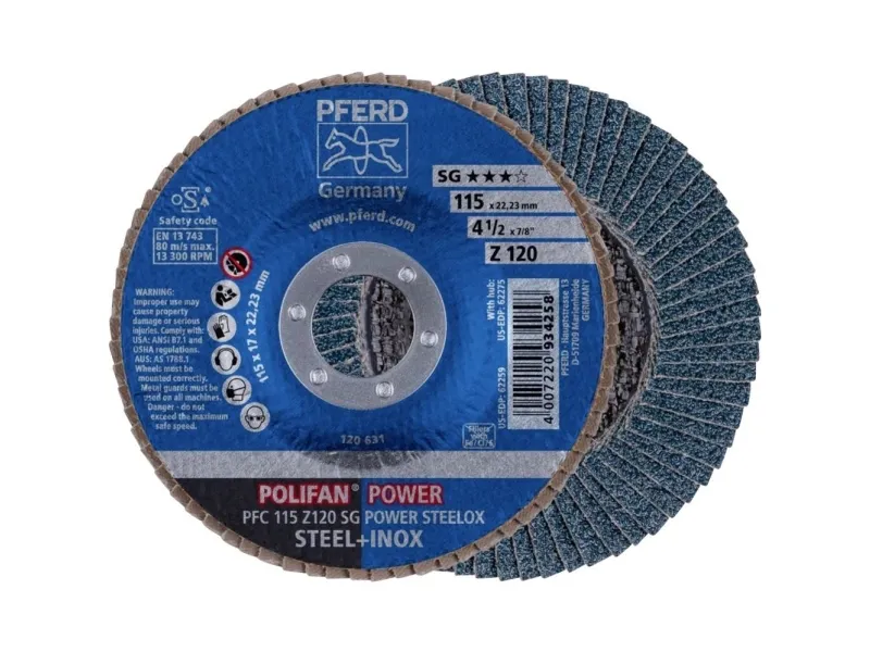 Lamelslibeskive Stjernefjederskiven POLIFAN Z SG Power overbeviser med en aggressiv spåntagende effekt og en fremragende holdbarhed, så den er så økonomisk forsvarlig at opnå. Den er den bedste konventionelle stjerneskive til stål.Drevtyper:- VinkelsliberAnvendelser:- Afgratning- Tilfasning- Svejsesøm bearbejdningAnvendelsesanbefaling:- Også egnet til overfladeslibning på stål.Materiale:- Rustfrit stål (INOX)- StålProduktfordele:- Hurtig arbejdsgang og høj effektivitet takket være aggressiv spændingseffekt.Den højeste aggressivitet i hele levetiden.- Mindre værktøjsskift pga. fremragende holdbarhed.