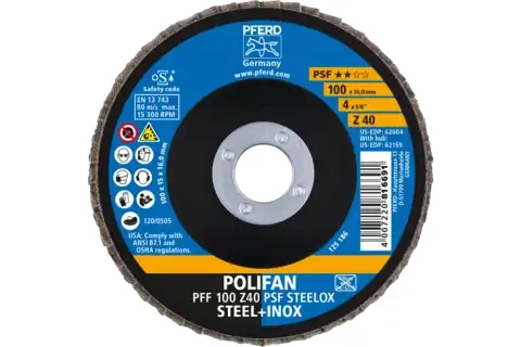 Lamelslibeskive PoLIFAN-skuffeskive med aggressiv spånfjernelse og en god holdbarhed.Drevtyper:- VinkelsliberAnvendelser:- Afgratning- Fladeslibning- Tilfasning- Svejsesøm bearbejdning- Trinvis finslibningMateriale:- Rustfrit stål (INOX)- StålProduktfordele:- Hurtig arbejdsgang og høj effektivitet takket være aggressiv spændingseffekt.- God holdbarhed.- Også egnet til vinkelslibere med svag effekt.