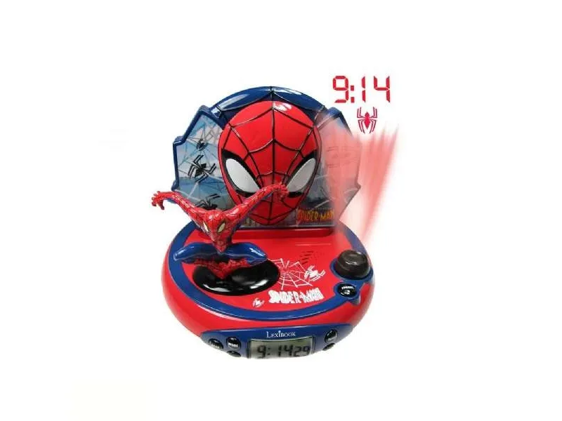 Smart Spiderman ur, der kan projektere tiden i loftet ved et tryk på PROJECT. Lyt til 4 forskellige Spiderman lydeffekter ved at trykke på Spiedrman figuren på uret. Det er også muligt at få lys i ved at trykke på uret. Digital ur med LCD display. Alarmen har snooze funktion. Den bruger 4 AA batterier (medfølger ikke)
