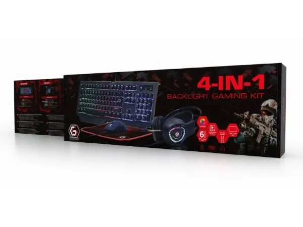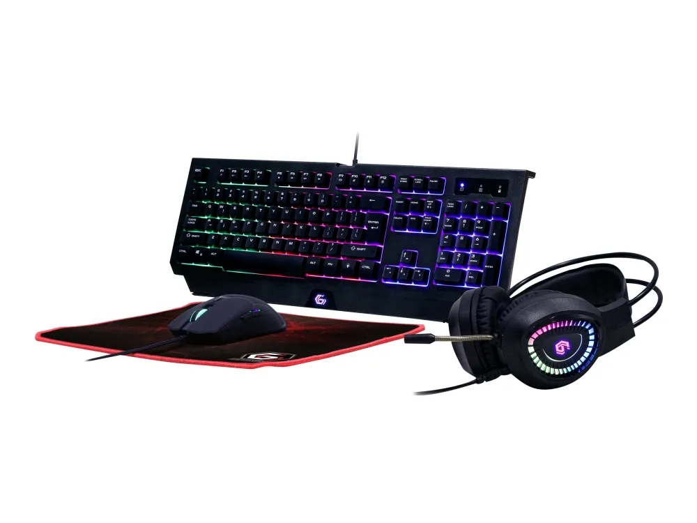 Gembird GMB Gaming Phantom GGS-UMGL4-01 - Sett med tastatur, mus, hodetelefon og musepute - bakgrunnsbelyst - USB - USA - fargeboks