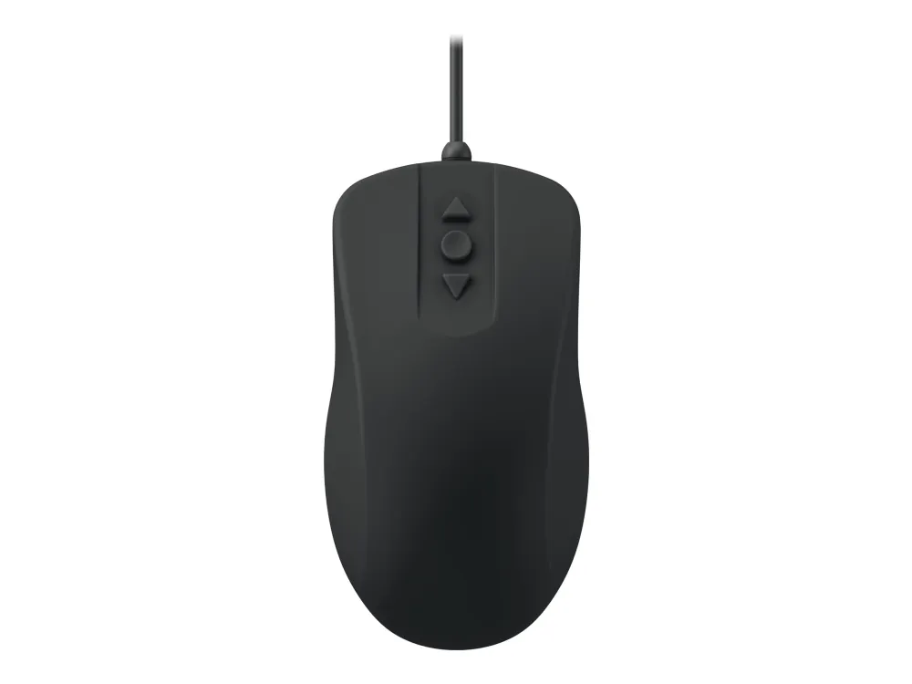 The cabled hygiene mouse AK-PMH12 of the MedicalMouse series is particularly made for the use in hygiene critical environments. The 360° silicon safeguard of the AK-PMH12 enables safe wipe disinfection and also protects the mouse against the ingress of dirt and fluids.