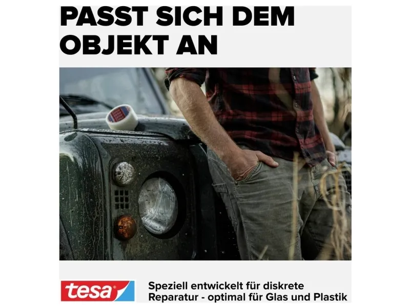 tesa® Ultra Power Clear Repastiring tape På den måde kan en pålidelig reparationskonstruktion redde en række uheldige situationer. Den ekstra klare tesa® Ultra Power Clear Repairing tape er egnet til indendørs og udendørs brug. Uanset om overfladen er glat eller ru, med det transparente vævbånd kan revner, huller og hop udbedres diskret. Båndet kan nemt vikles af og kan nemt rives af med hånden. Vigtigt: Reparationsbåndet er UV- og temperaturbestandigt. Det temperaturinterval, inden for hvilket det kan anvendes, er stort: Mellem -10 °C og +90 °C er tætningsbåndet temperaturresistent. På den måde kan den også anvendes under ekstreme vejrforhold.