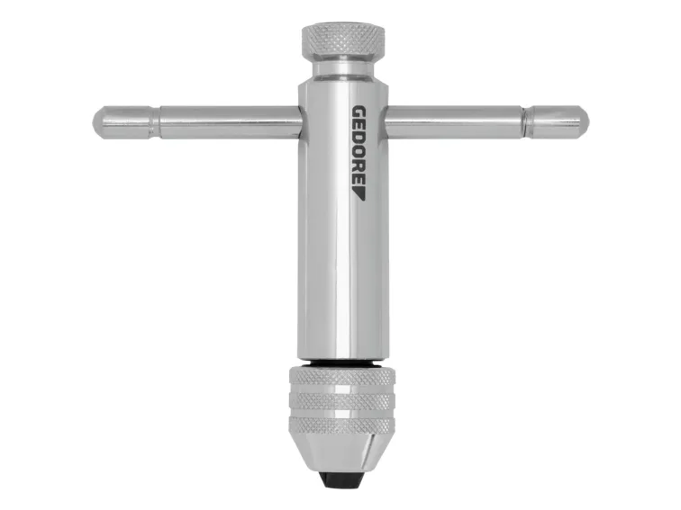 To operate bolt extractors (no. 8551 and 8551 S) in confined spaces Reversible for clockwise or counterclockwise operation Sliding T-handle With two-jaw chuck to hold square shanks All steel version, chrome-plated All steel version, chrome-plated