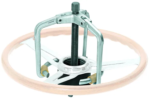 Featuring 1 pulling ring each with 100 mm and 150 mm diameter for 3-spoke and 4-spoke steering wheels To protect the steering-wheels, the pulling rings are fitted with sliding rubber sleeves