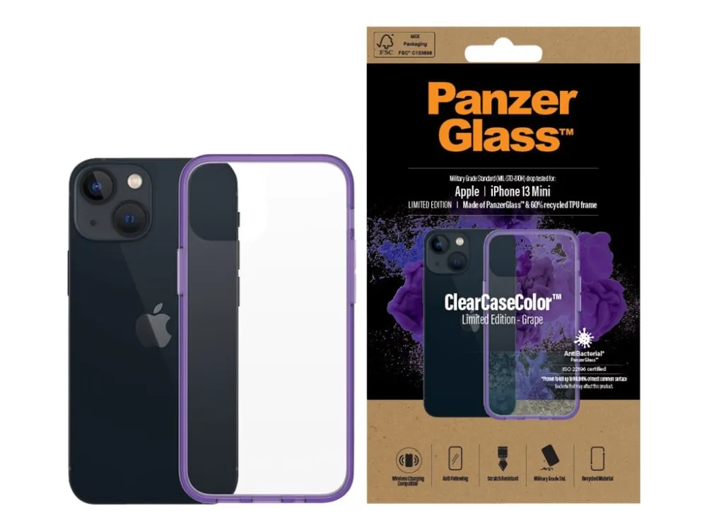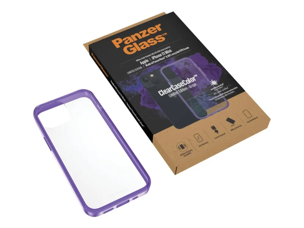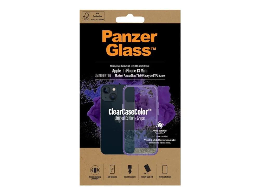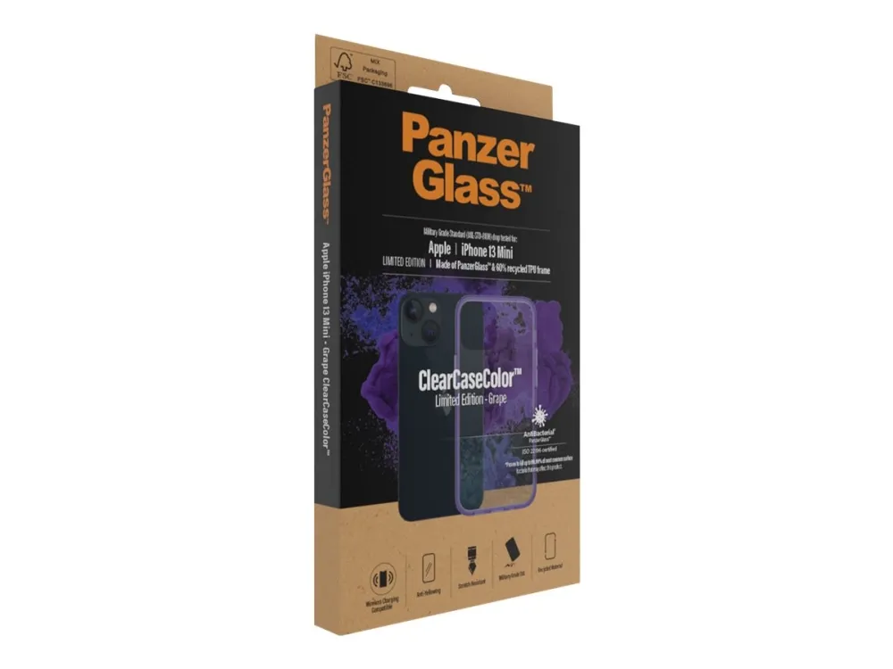 PanzerGlass ClearCaseColor - Limited Edition - Mobiltelefon bakdeksel - 60 % resirkulert termoplastisk polyuretan (TPU) ramme - Grape Clear Back - for Apple iPhone 13 mini