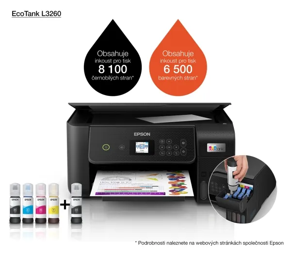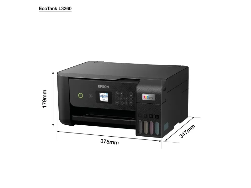 Epson L3260 - Multifunksjonsskriver - farge - ink-jet - påfyllbar - A4/Legal (medie) - opp til 10 spm (trykking) - 100 ark - USB, Wi-Fi - svart