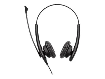 The Jabra BIZ 1100 Duo headset is designed for professionals who demand quality and reliability in their communication devices. It features high-quality sound with a wide frequency response range for both the microphone and headphones, ensuring clear conversations and high-quality audio playback. The uni-directional microphone captures your voice accurately, while the PeakStop technology protects your hearing by eliminating sudden loud sounds. Comfort is prioritized with an adjustable headband and the option to choose between foam and leatherette earpads, allowing for personalized wear throughout the day. This headset is not only built to last with its durable PC/ABS construction but also meets FCC and RoHS standards, ensuring safety and quality. Additionally, it offers easy control over calls with in-cord volume control and is certified for Microsoft Teams and Zoom, making it a perfect fit for modern professional environments. Whether used for computers or portable electronics, the Jabra BIZ 1100 Duo is a versatile headset that enhances communication and productivity.