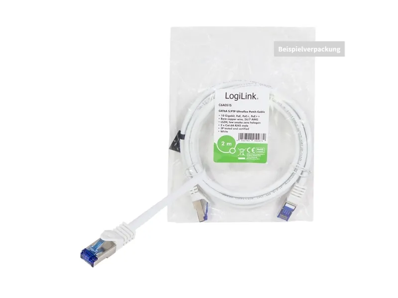 The certified LogiLink Cat.6A patch cable is ideal for data transfers up to 10 Gigabit Ethernet and transfer frequencies up to 500 MHz. The jacket is halogen-free and flame retardant, the copper wires are shielded in pairs, the overall shield is made of copper braid. The shielded RJ45 plugs come with an overmolded slim strain relief and snagless design.