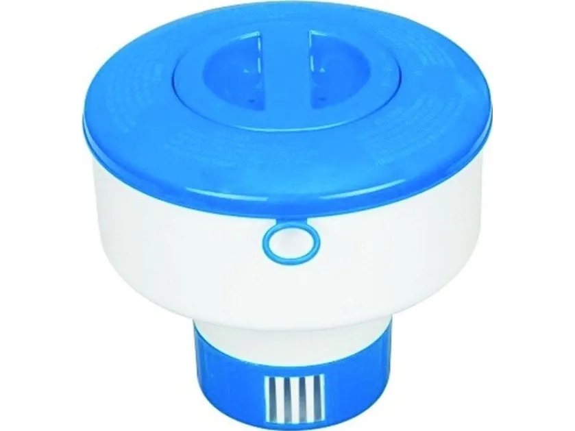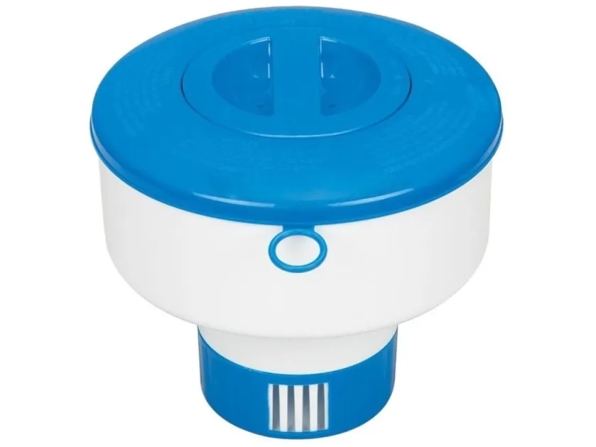 Holds up to 1in chlorine or bromine tablets. Made of durable non-corrosive polypropylene material. Adjustable control ring to control the release of chemical. Twist-lock cap. Suitable for Intex pools up to 12ft and PureSpa. Tablets not included.