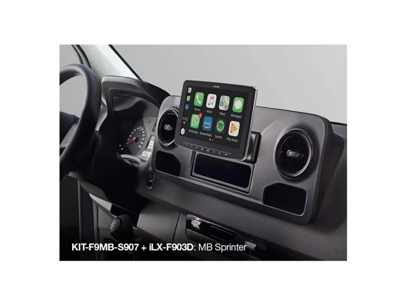 ALPINE 9" MONTERINGSSÆT SPRINTER W907 2018- Alpine KITF9MBS907 giver dig en 9 tommer installationssæt, som gør det nemt for dig at installere iLX-F903D, INE-F904D, ILX-F905D og ILX-F115D i en Mercedes Sprinter W907 (VS 30) fra modelåret 2018. Installationssættet indeholder følgende: