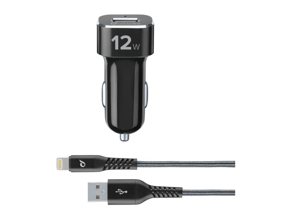 EXTREME CAR CHARGER KIT is the in-car charger which, thanks to its 12W output, can quickly charge an iPhone or iPad; what’s more, thanks to its metal case, it can withstand knocks and falls. There is an extra-tough cable inside fitted with a flexible cable gland made with SNAKE technology, which protects the most delicate part of the cable, making it up to four times stronger than other cables. The cable contains aramid fibres, which makes it extra-resistant to tugs and tears. Apple, iPad, iPad Air, iPad Pro, iPhone, and Lightning are trademarks of Apple Inc., registered in the U.S. and other countries. DuPont™ and Kevlar® are registered trademarks or belong to EI du Pont de Nemours and Company or its subsidiaries.