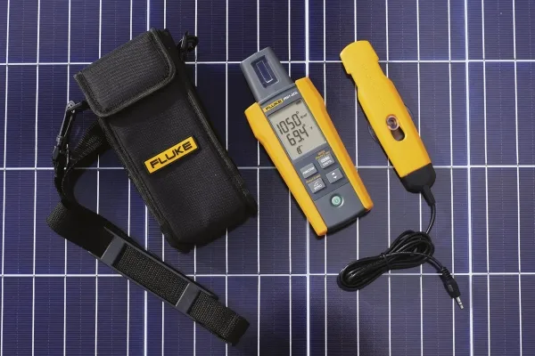 Indstrålingsmåleapparat Fluke IRR1-Sol er udviklet til at forenkle installation, ibrugtagning og fejlfinding af fotovoltaiske anlæg og til at måle indstrålingsstyrke, temperatur, hældning og justering af solvarmemodulerne med et enkelt håndholdt apparat. Takket være sin robuste, kompakte konstruktion, en beskyttende bæretaske og et letlæseligt, kontrastrigt LC-display til aflæsning af måleværdier ved direkte sollys kan du bruge IRR1-Sol overalt. Med enkel betjening, forsinkelsesfri måling af solindstråling og integreret temperatursensor opfylder kravene i IEC 62446-1-standarderne til kontrol, dokumentation og vedligeholdelse af fotovoltaiske anlæg. Derudover giver det integrerede kompas og hældningssensoren mulighed for en hurtig måling og dokumentation af justeringen af tag eller montagepunkt samt hældninger og modulhældning under måling, installation eller indstilling af et anlæg.