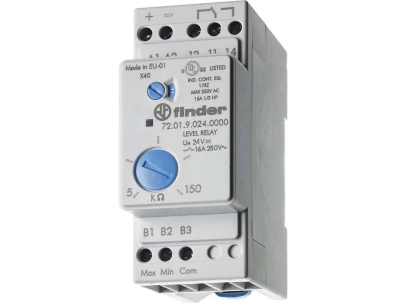 Overvågningsrelæer Niveauovervågning til din-skinne 1 omskifter til 16 A. Kontaktmateriale AgCdO automatudførelse: 35 mm bredt Overvågning af op til 3 sensorer Følsomhed kan indstilles fra 5 til 450 kOhm Forsinkelsestid kan vælges 0,5 eller 7 sekunder Funktionen påfyldnings- eller tømningsovervågning kan vælges LED-statusvisning Forsyningsspænding 24 V AC Relæbeskyttelsesklasse: IP 20