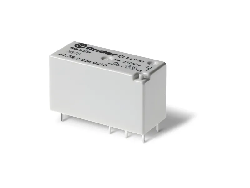 Relæ - PCB Lavt stik-/printrelæ 2 omskiftere til 8 A / 250 V AC kontaktpindhak: 5.0 mm kontaktmateriale AgNi, spoledata 24 V DC, 0,4 W, 1440 ohm, relæbeskyttelsesklasse RT III.