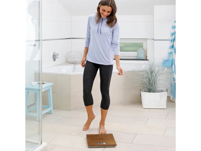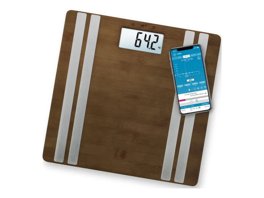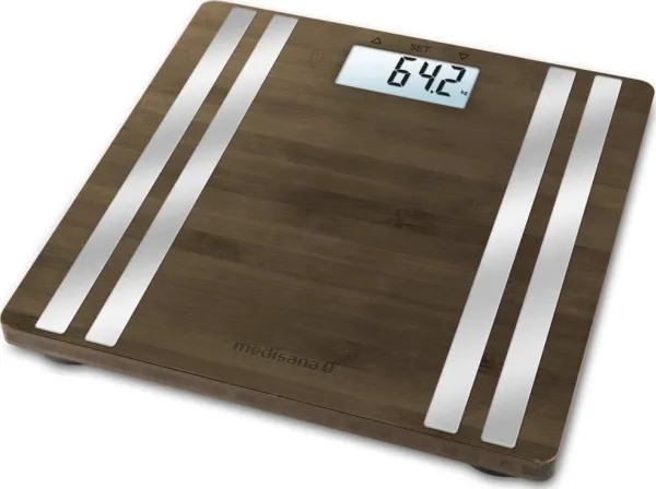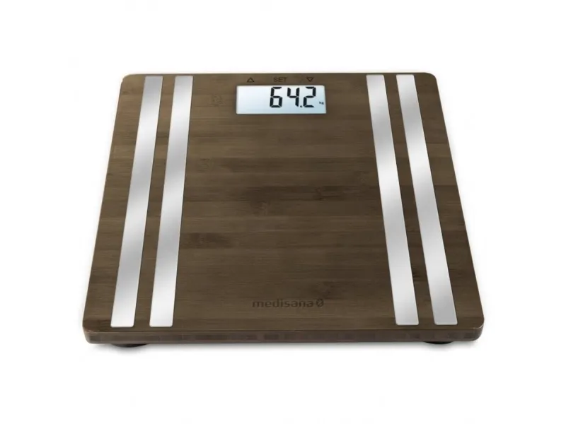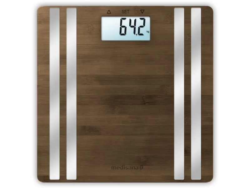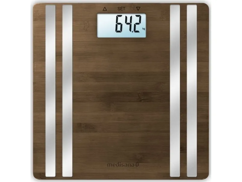The MEDISANA BS 552 connect bathroom scale offers a modern solution for keeping track of personal health data. With its sleek bamboo construction, it enhances your bathroom aesthetics and supports various measuring functions including body water percentage, body mass index (BMI), muscle mass, and body fat mass. This scale is equipped with Bluetooth technology, making it compatible with the VitaDock+ application for seamless tracking and management of your health statistics. Designed for efficient use, this electronic scale features an instant-on function and can support a maximum weight of 180 kg. A memory capacity of 240 results allows for multiple users to keep their data organized. Whether in kilograms, pounds, or stone, the BS 552 connect offers graduation options to fit your preferred measurement, providing a user-friendly experience for health control.