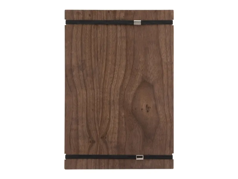 • De førsteklasses naturlige materialer i Securit® A4 Walnut Tablet Menuholder er en tidløs klassiker. Denne håndlavede, dobbeltsidede menuholder lavet af lakeret valnøddetræ er et ideelt valg til moderne barer og restauranter. To sorte, fleksible elastikker gør det let at udskifte menuarket, når det er nødvendigt. Perfekt i kombination med den matchende Securit® Walnut Bill Presenter.