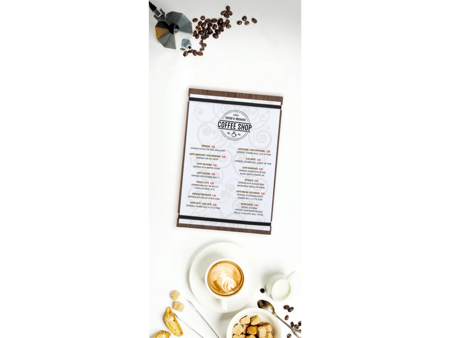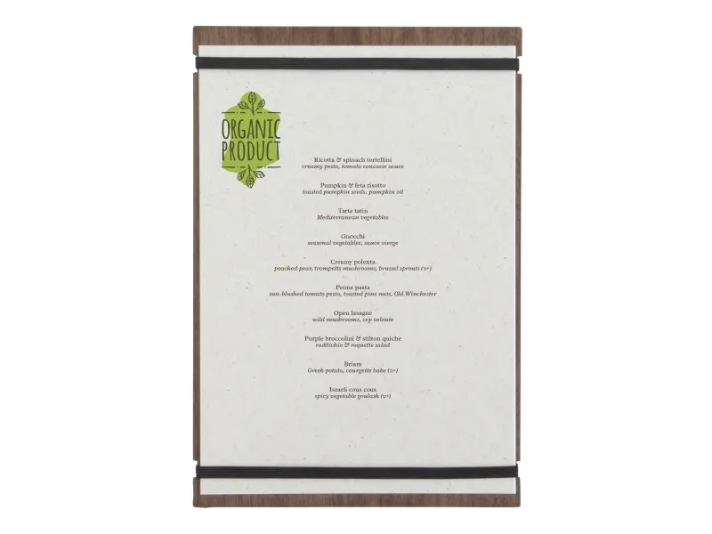 Menu Kortholder A4 Securit viser 1 A4 side med elastik Valnød,stk